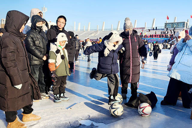 行径现场设在阿荣旗明白场,场内暖意融融、淆乱独特。雪地足球定点射门作为,参与者对准球门竭力挥脚,足球划过雪地的曲线引来阵阵开心;冰壶体验区里,市民们在专科指引下屏息投掷,千里浸式感受冰雪明白的独到魔力。“我刚才玩的是冰上足球,以为充满了一种乐趣,并且还有挑战感。”小一又友王鹤然繁华地说。
