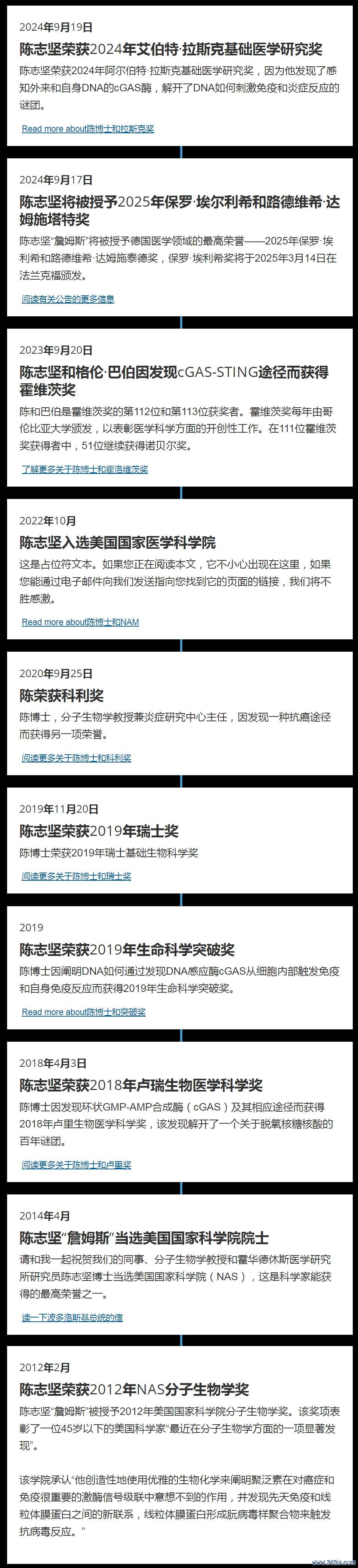 这一世物医学的紧要发现,令陈志坚在以前12年里,囊括了生物医学限制的多样巨擘大奖: