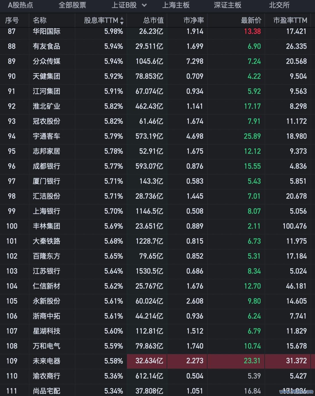 35、海螺水泥,誉满全球,以超卓的品性和事业,得回了“天下水泥看中国”的好意思誉。股息率3.6%,市净率0.76倍,市盈率19.1倍。