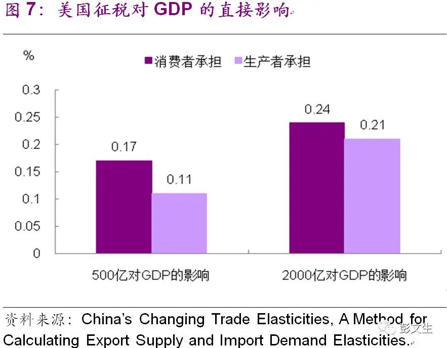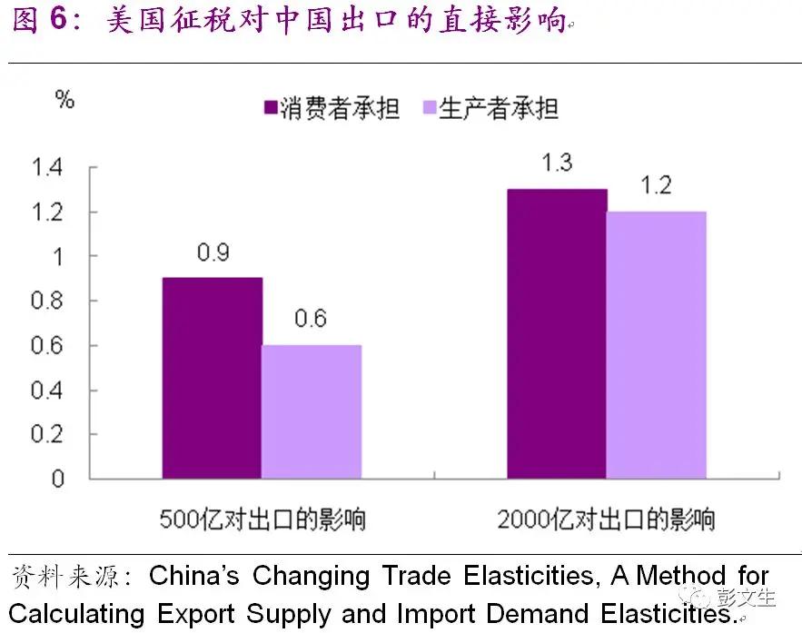 下图咱们对好意思国纳税对中国出口和经济增长奏凯影响的估算(见图6和图7),如果不接洽第二轮交易挫折仅接洽对500亿、2000亿好意思元商品的纳税,总体影响照旧比较温和的。天然许多东谈主讲了重要还要看盘曲的影响,比如两边若彼此挫折、彼此加码,可能带来将来营商环境巨大的不细则性,进而对企业的投资举止和将来的发展主张产生很大的负面冲击。这个冲击可能比奏凯的比如说好意思国给中国加10%关税影响要大。10%的关税敬佩有影响,但咱们的经济里面自身就有曲解的要素,并不会因为加了10%的关税就垮下来,重要是不成彼此加码。