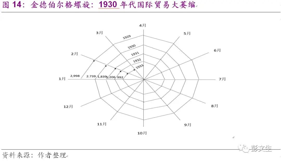 终末讲少许应酬之策的念念考,在刚才讲的配景下中国可能若何来应酬。图14是1930年代国际交易大萎缩时期金德伯尔格画的一个图,国际交易从1930年到1931、1932、1933年大幅度萎缩,呈螺旋式下跌。其后好多东谈主总结为什么战后走向多边的交易机制,走向国际交易的解放化,便是因为吸取1930年代的训诫,交易国彼此挫折导致国际交易崩溃,进而对经济带来很大的冲击。是以当今的问题是,会不会发生不异的事情?我看当今也有东谈主把刻下和1930年代比较,我认为不会,为什么不会呢?因为当今的轨制环境和1930年代也曾十分不一样了,各人都知谈宏不雅政策是凯恩斯1936年在战后才缓缓进修的,1930年代西方国度并莫得宏不雅政策,当今咱们有财政货币政策来巩固经济。