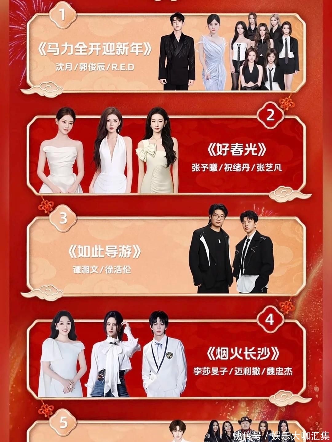 2月7日,湖南卫视起先揭晓马年春晚齐全艺东谈主图谱,定调主题为“立时串门,HORSE(功德)发生”,由何炅与汪涵联袂领衔专揽天团。