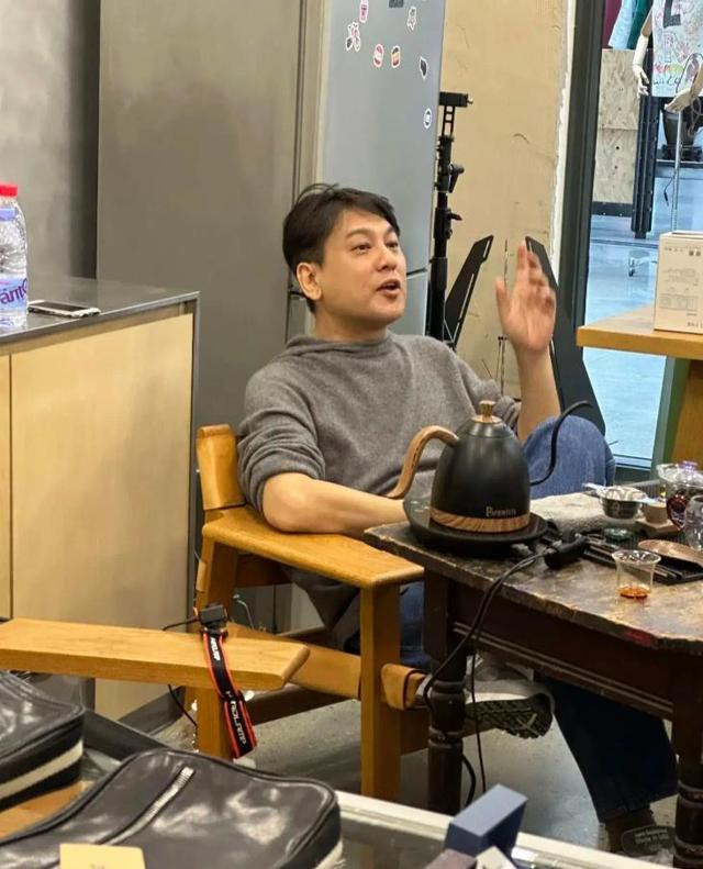 路东说念主视角下,46岁的朱孝天穿搭的高出低调内敛,上身灰色帽衫,下身淡色牛仔裤,脚上蹬着一对通顺鞋,翘着二郎腿倚靠在椅子上的他,险些让东说念主看不出涓滴明星架子,与东说念主语言时也高出亲和友善,俨然给东说念主一种中年阳光大叔的既视感。