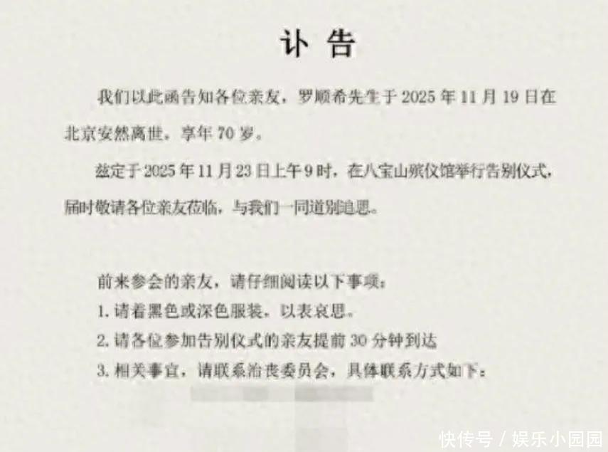 最近网上热议罗晋和唐嫣闹隔离,缘故是他父亲升天了,但唐嫣没去北京参预葬礼,网友就各式推断。自后才知谈,本来罗晋爸是11月19号在北京升天的,享年70岁,他们定的告别典礼是在23号。罗晋的牙东谈主发了讣告,说他爸以前是江西卫生局局长,口碑挺好的那种,退休后也没仗着犬子是明星显摆,活得低调。
