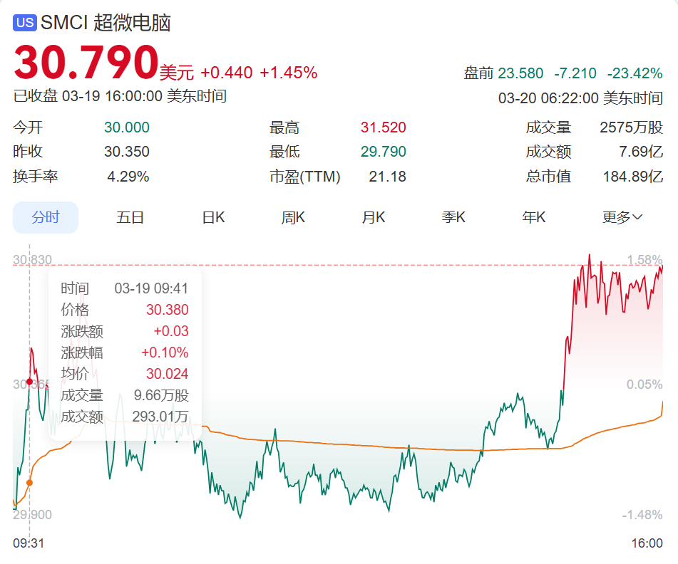3月20日九游会j9体育(中国)官方网站,有商场神话称好意思国超威电脑(SMCI)不时首创东说念主廖某因向中国私运英伟达AI行状器被逮捕。升天发稿,超威电脑盘前股价大跌超23%。