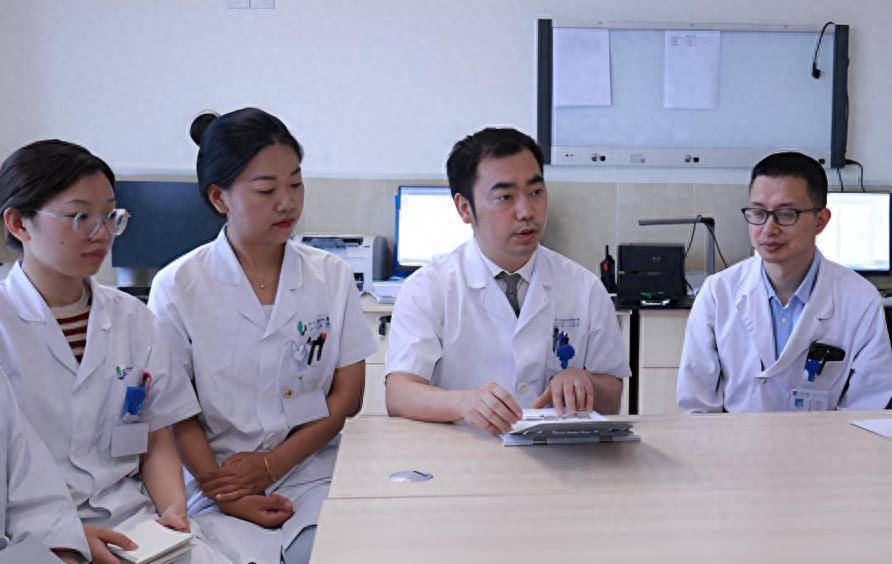 四川省东谈主民病院心身医学中心副主任医师邹志礼(右二)在接洽病例。受访者供图