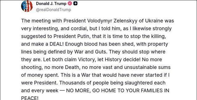 特朗普在“TruthSocial”社交平台上写谈:“他们应停在现时方位的位置。” 用饰演粉饰讲错,特朗普仍在否认 特朗普试图用脸色化的表述粉饰好意思国违反承诺的事实,他继续宣称: “鲜血也曾流得够多了,截至区域的限制由斗殴和勇气决定。他们应该停在目下的位置。让两边齐宣称我方收效,让历史来评判!别再开火了,别再有死字,别再承受大宗且难以承受的开支。要是我那时是总统,这场斗殴压根不会爆发。每周齐非凡千东谈主丧生——够了,回家与家东谈主和平团员吧!” 随后,特朗普向记者进一步明确其宗旨: “咱们觉得,他们应该停在现时的限制,也等于前方。目下前方是明确的。其他问题很难达成共鸣——你说要这块地,他说要那块地,不合太多。是以我觉得,他们目下就该停在前方。回家去,罢手夷戮,末端这一切。保管近况就好。顿巴斯目下也曾别离了,我难忘俄罗斯也曾截至了78%的邦畿。先保管近况,以后再谈其他问题……” 这意味着什么?谜底很明确:特朗普先是用“战斧”导弹向莫斯科施压,迫使俄方可能在赫尔松、扎波罗热问题上败北,随后却得寸进尺,鼓胀倒向基辅的态度。而泽连斯基为拖延俄军盘曲、为后续斗殴作念更充分准备,早已屡次说起“按现时截至线媾和”,并在罗致好意思国寰球播送公司(NBC)采访时再次重申: “若咱们但愿尽快通过社交门道运转和平商量,就必须让队列停在现时位置。”